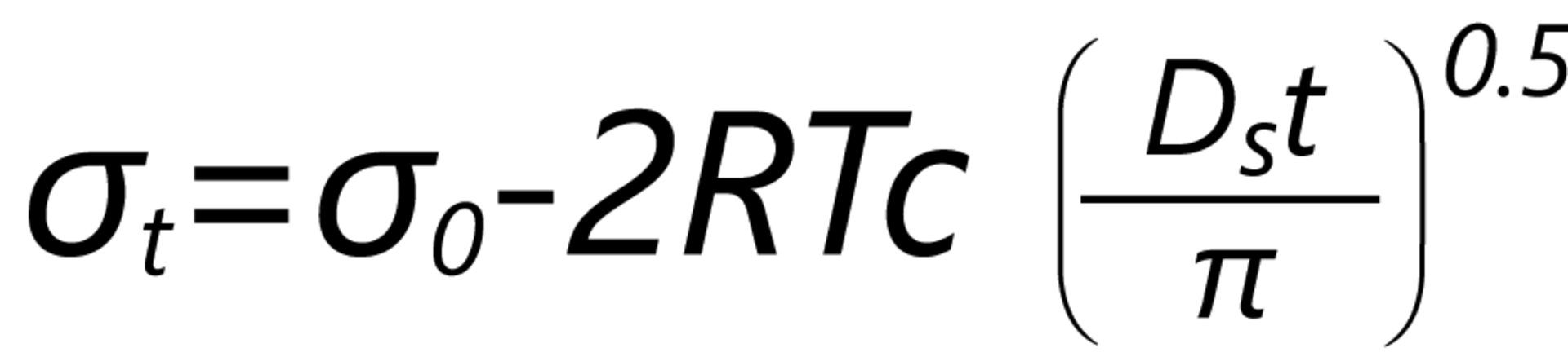 σt = Oberflächenspannung beim Oberflächenalter t; σ0 = Oberflächenspannung des reinen Lösungsmittels; R = Universelle Gaskonstante; T = Absolute Temperatur; c = molare Tensidkonzentration; Ds = Diffusionskoeffizient