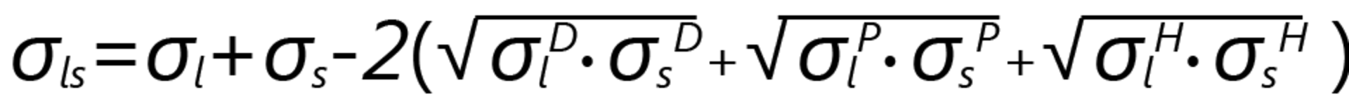 Building on the Fowkes method and the Owens, Wendt, Rabel und Kaelble method, the interfacial tension σsl is calculated based on the two surface tensions σs and σl and the similar interactions between the phases. These interactions are interpreted as the geometric mean of a disperse part σD, a hydrogen bond part σH and a part comprising other polar interactions σP of the surface tension or surface free energy: