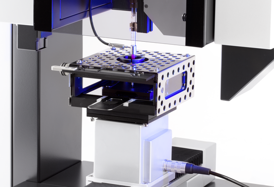 The TC11 – Temperature Control Chamber has been specially developed for measuring the contact angle on large samples at temperatures of up to 130 °C. The slide-in sample tray is conveniently loaded outside the chamber and can be moved from the outside when the chamber is closed and at the required temperature. Small samples are prevented from shifting by means of removable holding clamps. The front viewing window simplifies dosing in the required sample position.